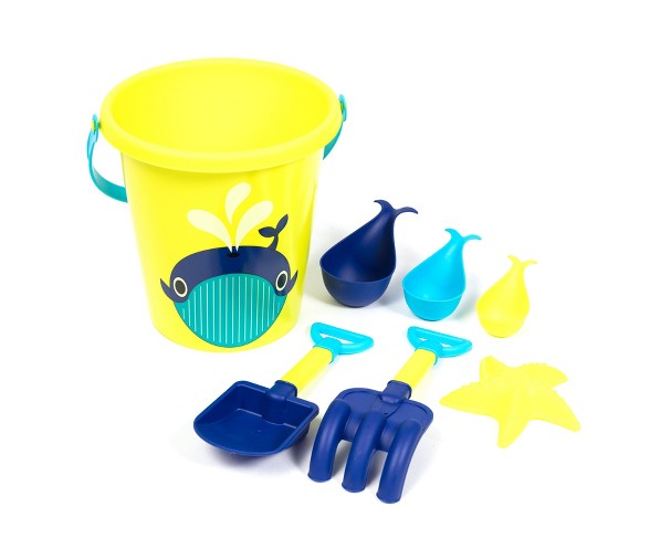 Description It's a whale of fun to dig and play with the Antsy Pants Whaley Fun 7 Piece Sand Toy Set. Featuring a 9" bucket with a convenient handle for carrying, a durable shovel, rake, starfish sand mold, and 3 whale cups, the Whaley Fun 7 Piece Sand Toy Set pairs perfectly with all Antsy Pants Sand Toys. Get and give play! For every item purchased, Antsy Pants helps national nonprofit KaBOOM! build playgrounds for kids living in poverty across America.* *For more info on the Antsy Pants donation program, please visit www.antsypants.comDimensions (Overall): 8.8 inches (L) x 9.0 inches (W) x 9.3 inches (H)Suggested Age: 18 Months and UpMaterial: PolypropyleneIncludes bucket, shovel, rake, starfish sand mold, and 3 whale cups Bucket dimensions: 8 IN x 8 IN x 9 INOnly at Target! Estimated shipping dimensions: 8.8INCH X 9.4INCH X 12.2INCH DPCI : 091-15-2309 UPC : 4897060054632 TCIN : 52756637 Estimated shippimg weight: 0.73POUND
