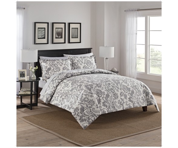 Description Combine casual style with classic elegance with the Marble Hill Tanner Reversible 3pc Comforter Set. This updated traditional comforter is inspired by the world traveler and features a bold Jacobean silhouette. Contrasting ground adds the perfect amount of style and sophistication. Reverse features face pattern with inverse coloring. Queen comforter measures 90x94 and includes two 20x26 shams, and King comforter measures 106x94 and includes two 20x36 shams. 100% cotton. Easy care, machine washable.Number of Pieces: 3Includes: Comforter, 2 King ShamsPiece 1 Type: Bedspread, Quantity: 1Piece 1 Dimensions: 106 inches (W) x 90 inches (L)Piece 2 Type: Pillow sham, Quantity: 2Piece 2 Dimensions: 36 inches (W) x 20 inches (L)Fill Material: 100% PolyesterDry clean: Do not dry cleanTextile Material: 100% CottonStyle: Comforter bedding setsSheet Features: ReversiblePattern: Printed patternTextile construction: Plain weaveThread Count: 144Care and Cleaning: Machine washAvailable in Queen and King sizesSet includes 1 reversible comforter and 2 coordinating shams100% CottonMachine Washable Estimated shipping dimensions: 21.0INCH X 22.0INCH X 8.0INCH DPCI : 060-13-2963 UPC : 885308529428 TCIN : 53263447 Estimated shippimg weight: 7.67POUND