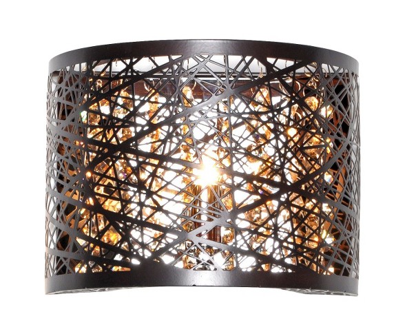 Description Give your home lighting system an intricate, beautiful touch of style with the ET2 Lighting Inca 1-Light Wall Sconce Brown. This flush mount ceiling light has a geometric cutout design that reveals hanging crystals within. In a neutral brown finish with a touch of sparkle, this metal ceiling light looks great with any sort of decor. It can be used with up to a 40 watt Xenon bulb.Dimensions (Overall): 5.9 inches (H) x 7.8 inches (W) x 4.0 inches (D)Weight: 1.54 poundsLighting Shade Material: MetalLighting Body Material: MetalNumber of Light Bulb Sockets: 1Cord Covering: CordlessMaximum Light Bulb Wattage: 40 wattsRequires Hardwired Installation: NoNumber of Lighting Shades: 1California Title 20 compliance: Not subjected to CA Title 20Warranty: 1 year limited warranty. To obtain a copy of the manufacturer's or supplier's warranty for this item prior to purchasing the item, please call Target Guest Services at 1-800-591-3869 Estimated shipping dimensions: 7.1INCH X 8.66INCH X 11.0INCH DPCI : 074-14-2445 UPC : 845094060727 TCIN : 16494834 Estimated shippimg weight: 2.42POUND