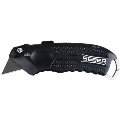 Description Seber Aluminum Autoload Knife - Comes with a carabineer belt hook and a smooth slide mechanism Seber Aluminum Autoload Knife is made of cast aluminum. It comes with a carabineer belt hook and a smooth slide mechanism with thumb indent and an anti-slip grip for a firm hold. Material: Cast Aluminum Type: Utility Knife Color: Black Weight: 0.5 lbs. Warranty: 1 Year Specifications Color Family : Black Utility Knife Type : Autoload Knife Brand : Seber Customizable : No Weight : 1.00 lbs. per Each