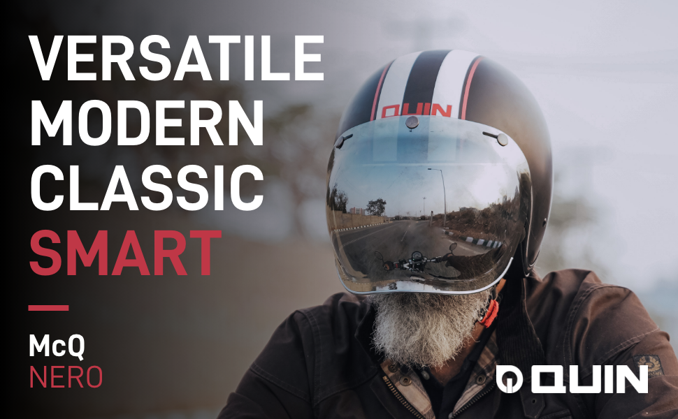 The Quin MCQ Nero Open Face Helmet combines cutting-edge safety with sleek design, featuring patented ConeHead impact technology, integrated Bluetooth 4.0 with crash detection, and a live SOS beacon. Designed for the modern rider, it offers premium comfort, dual UV visors, and up to 8 hours of continuous Bluetooth use, all while meeting DOT safety standards.