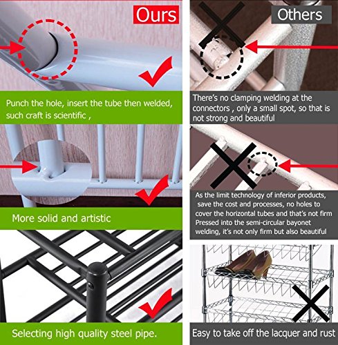 Color: white Description: * Stylish and elegant design * Good combination of clothes and shoe rack. * It can store clothes, hats, umbrellas, bags ,shoes, etc. * Separate sections for those goods. * 18 solid hooks protect your clothes carefully. * Composite layers shelf assembled by metal pipes, stronger enough * Smooth surface, easy to keep clean and maintain * Adjustable screw rubber feet * Material: iron * Weight: Approx. 7.5kg/16.5lbs * Max. Loading: each hook: 2.5 Kg/5.5Lb; each rack: 15Kg/33.1Lb; total: 67.5Kg/148.8LbPackage included: 1XSteel Hanger