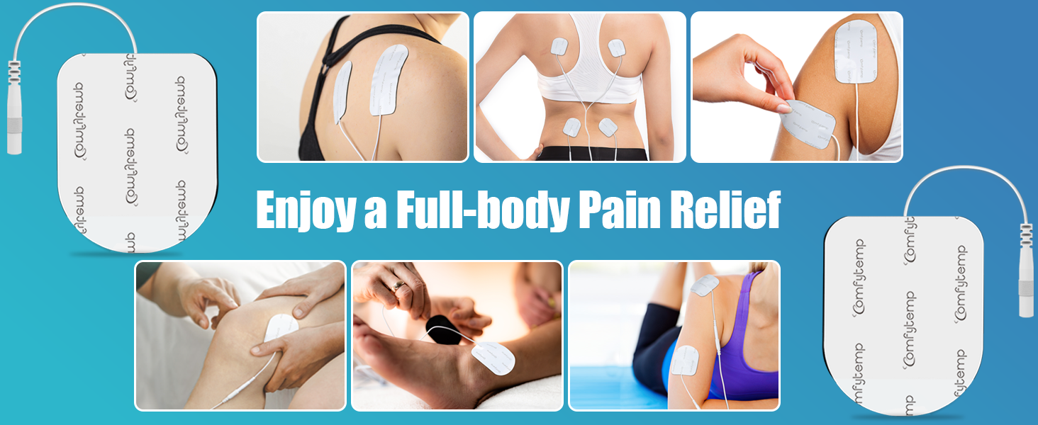 Comfytemp TENS Unit Replacement Pads, 10 Pcs TENS Pads with 3 Sizes, Reusable Self Adhesive 2mm Pin Connector Electrodes Pad for Most TENS, Non-Irritating Design for Muscle Stimulator Electrotherapy