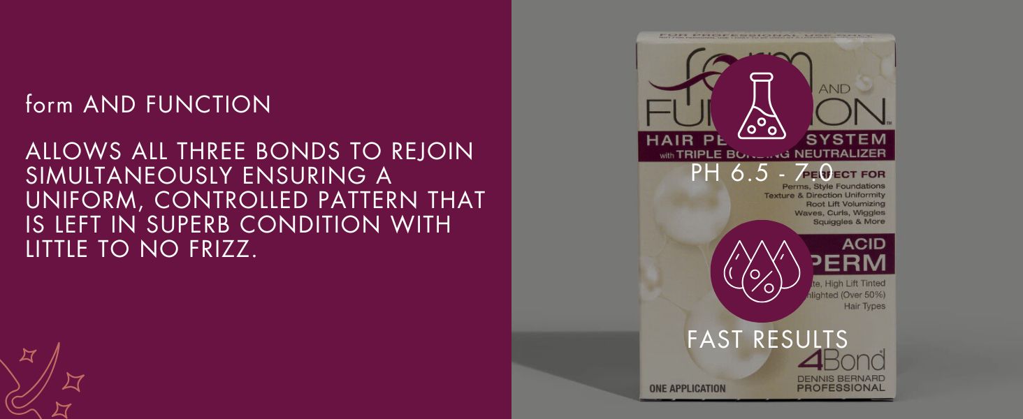 The form AND FUNCTION Hair Perming System is expertly crafted for fragile, delicate, and high-lift tinted hair types. With a pH balance of 6.5-7.0, it creates soft yet firm curls in just 5-10 minutes, all while providing ultimate conditioning and reducing frizz for a stunning, voluminous finish.
