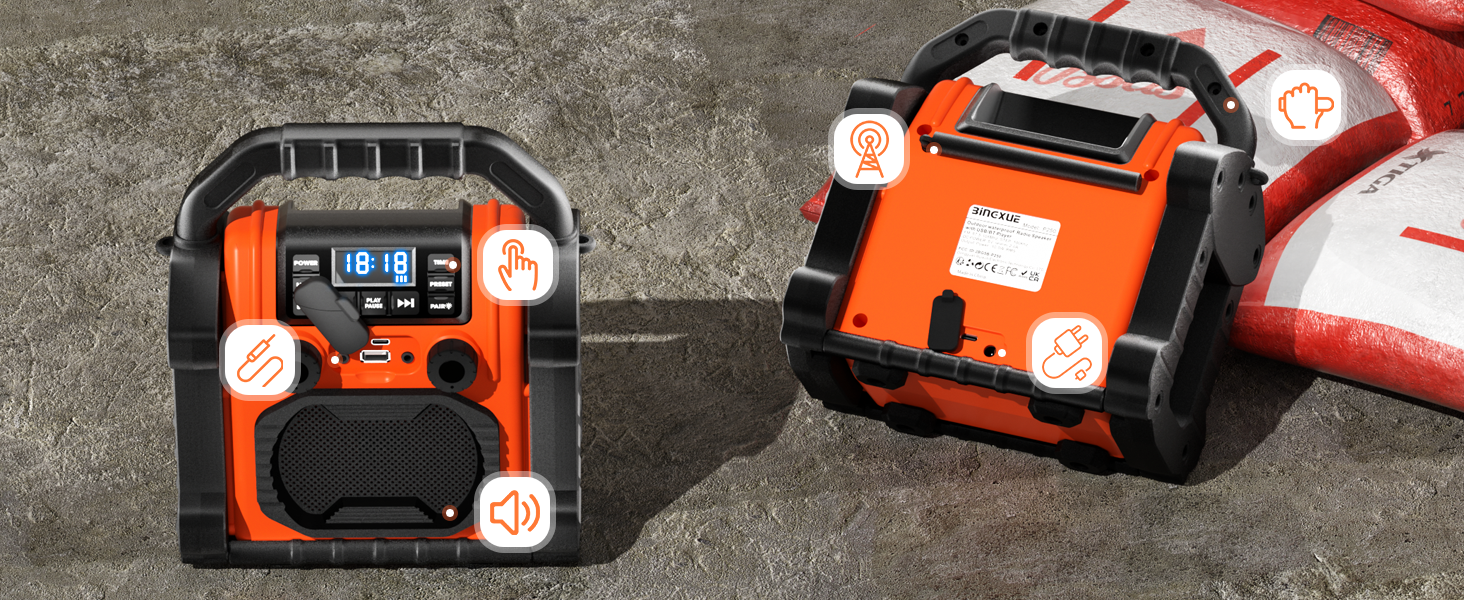 BingxueFM Radio Receiver,USB Bluetooth Speaker with Clock Alarm/LED Lights,Portable Anticollision for Constrution Site/Outdoor/Fishing/Yoga/Party/Camping(Color Option) (Blue)