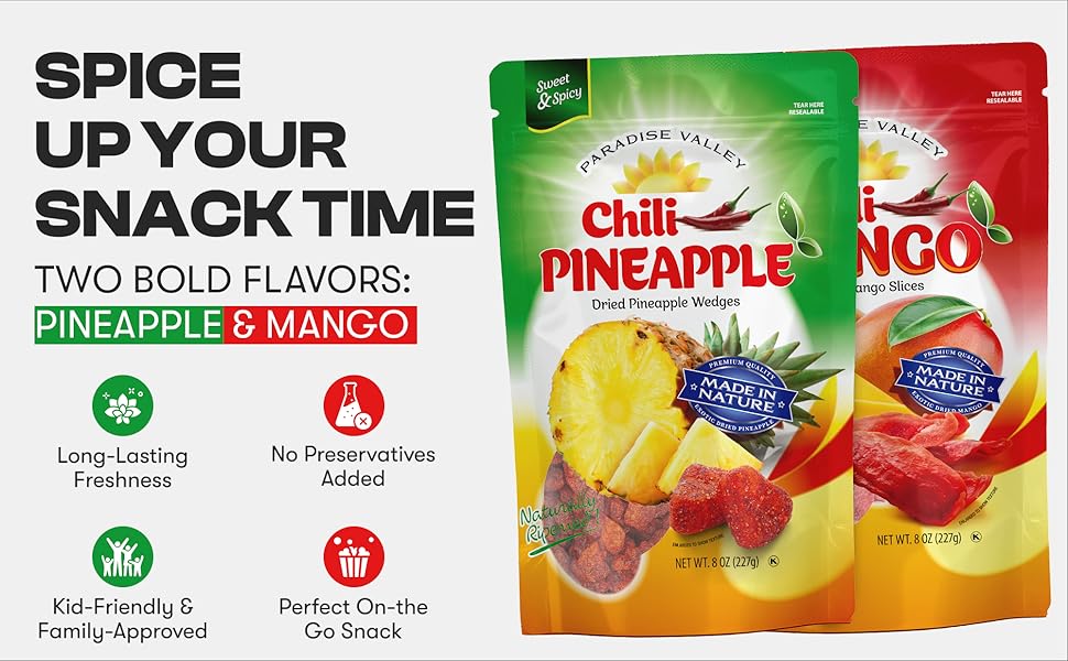 - SWEET SPICY FLAVOR FUSION - Experience the perfect balance of tangy pineapple and bold chili in every crunchy bite.