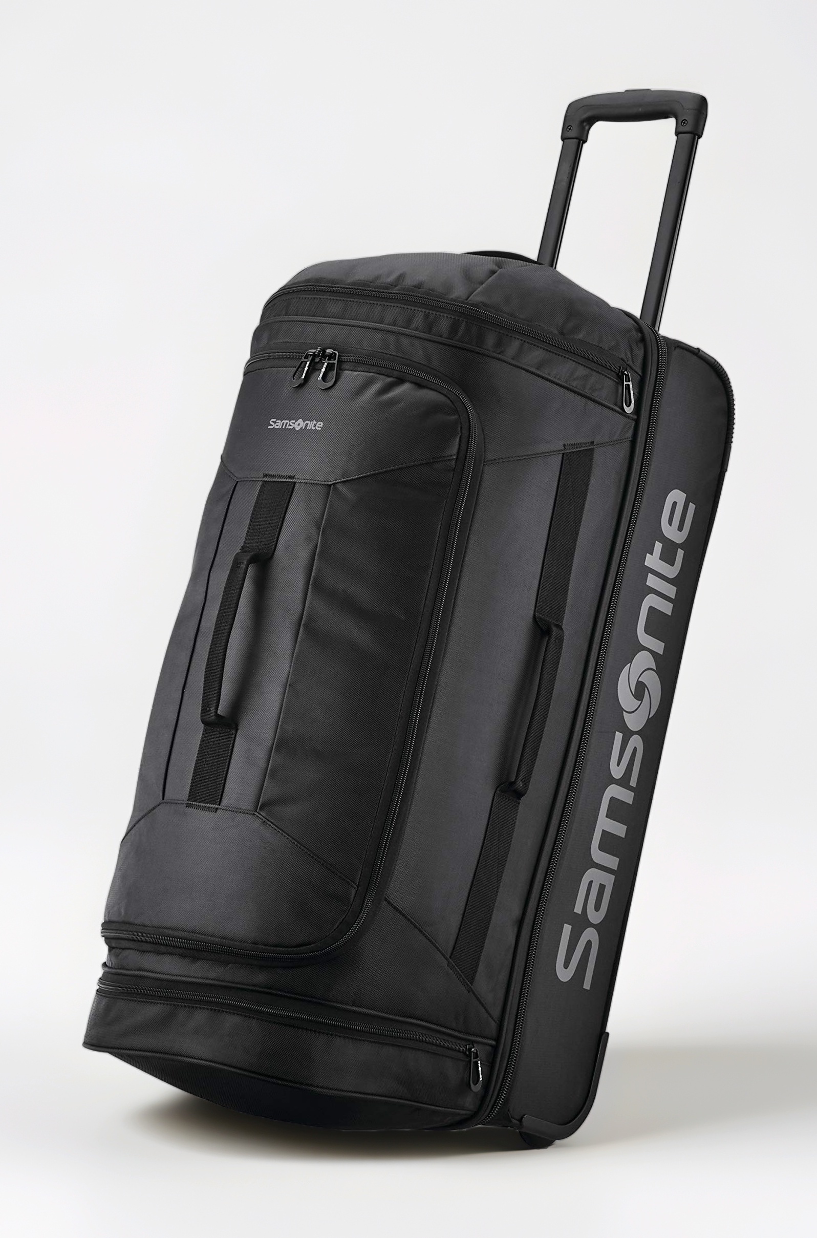 The Samsonite Andante 2 Wheeled Duffel is a 28-inch, water-resistant travel bag crafted from durable 840D polyester. Featuring smooth inline skate wheels, reinforced corner protection, and multiple grab handles, it offers effortless mobility and convenience. With dedicated end pockets for shoes and wet items, plus a push-button retractable handle, this 7.25 lb duffel combines organization, durability, and style for the modern traveler.