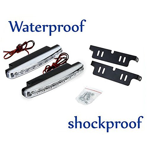 Overview:This item consists of a pair of super bright LED daytime running lights, which allow your vehicle to be seen at much further distances and improve safety.Features:A pair of super bright LED daytime running lights.Each light with 8 pcs high power bright LED bulbs.Extremely long LED life and low power consumption.Easy to install with installation bracket included.High visibility & maximum safety.Waterproof & shockproof.Specifications:Color temperature: 6000K-7000KVoltage: DC 12VLED lifetime: up tp 50000 hoursItem size: 15.5*4*2cm (approx.)Item weight: 75g/pcPackage size: 19*13*3cm / 7.5*5.1*1.2inPackage weight: 195g / 6.84ozPackage including:2 * LED lights4 * Screw mounts