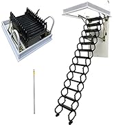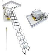 The INTBUYING 47.5x27.5in Attic Ceiling Ladder is a robust, telescoping folding ladder made from carbon steel, supporting up to 660 lbs. Designed for ceilings up to 9.8ft, it features 12 steps with removable middle rungs, enhanced safety with reinforced handrails, anti-slip steps, and hydraulic rods. Its compact, space-saving design and easy installation make it ideal for lofts, garages, and other tight spaces, combining durability with ergonomic convenience.