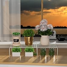 Very easy to use, and I found a way to use it in our kitchen cabinets. However, I did not realize it was not quite expandable enough to reach end-to-end in our cabinets. Also, a tad too flimsy. The positive aspect is that one part rests on the other, so there are not too many vertical legs, which are to be avoided, as they would impede the ability to insert larger items under the unit. The best unit has one part with four legs, and one part with two, but with hooks that hook onto the rungs of the first unit, allowing efficient storage with a sturdy structure. I could not find such a unit, in this current search.