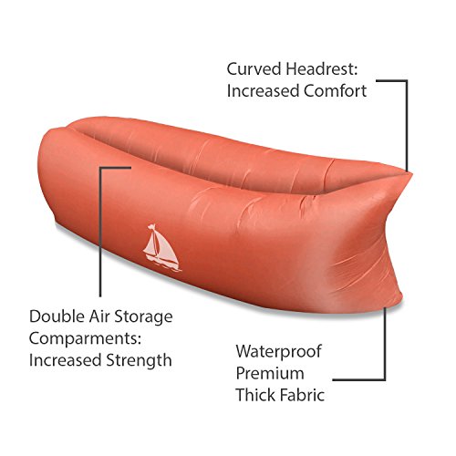 Relax in style with Elemental Design's durable premium quality inflatable lounger! Perfect for indoors, outdoors, camping, hiking, swimming pool, beach, BBQ or in the backyard. Here's why: ► EXTRA DURABLE! Made from a durable high strength multi-layered thick premium fabric and double air storage compartments allowing for up to a 200kg load limit and extra durability. ► COMFORTABLE! A premium curved head rest design allows for extra neck and back support so you can enjoy a more comfortable experience. ► USEFUL ACCESSORIES! Comes with a strong plastic nail to secure the inflatable sofa to the ground on a windy day as well as a drinks and book holder. ► PERFECT WITH FRIENDS! An increased load limit, when compared with competing products, allows for several friends to sit on it together at one time. ► DOUBLE AIR STORAGE COMPARTMENTS! Unlike many competitors who use a single air storage compartment, Elemental Design's sofa has a double air storage compartment increasing strength and durability. How to Inflate 1. Open up and hold one compartment open, run in a straight line to inflate and close it 2. Repeat step one for the second compartment 3. Wrap the end over tightly 4-5 times until the air is compressed and then the buckle clips Elemental Design's premium inflatable air bed is perfect for swimming and paddling pools however to be safe, it should not be used in deep open water.