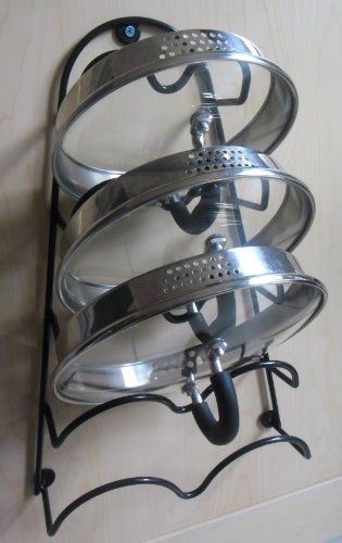 Hold up to 5 pot lids, of most sizes, also fits most pot lid types which have different handles