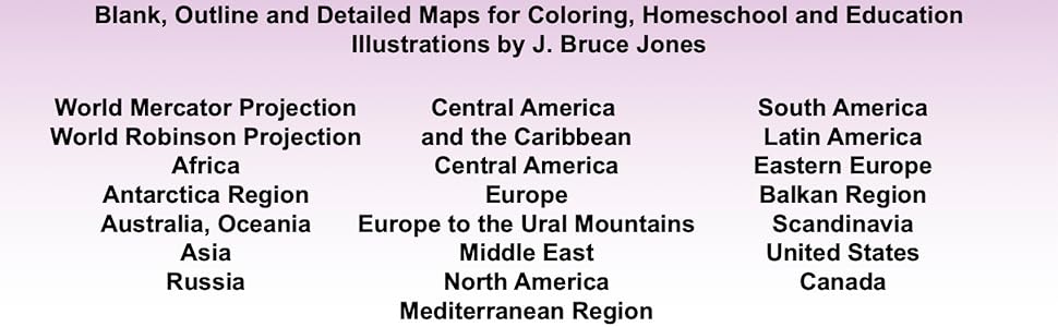 World Regional Maps Coloring Book: Maps of World Regions, Continents, World Projections, USA and Canada