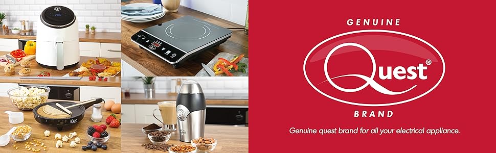 The Quest 34100 is a sleek, gloss black 10-cup filter coffee maker featuring a 1.25L glass carafe, 870W power for fast brewing, an anti-drip valve for clean pours, and a permanent washable filter for sustainable use. It keeps coffee warm for 40 minutes and includes an illuminated on/off switch for ease of use.