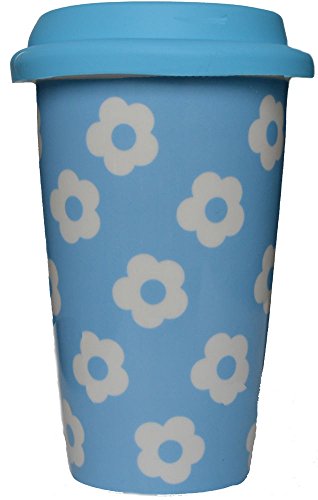 - Double Walled Travel Ceramic Mug with Silicone Lid - Flower Pattern