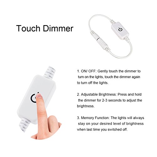 Are you worried about the color difference after makeup? Our 10 LED light bulbs to provide plenty on brightness to makeup in dark. 6,000K white light closely simulates natural sunlight, and all professional makeup artists use natural sunlight color temp to match perfect look. Are you tired after a long time makeup due to the dazzling lights? Our dimmable led bulbs produce a soft and bright glow which is not dazzling. High luminous efficiency, no flicker and no spots. You can also adjust brightness with the touch dimmer. Less than 3 second is on/off switch function. More than 3 seconds, the brightness will be raised to highest or fallen to lowest. Are you annoyed at the falling bulbs? 3M VHB which make it's more difficult to fall off. Thanks to the removable adhesive design, you can remove the bulbs without any damage or mark left. Do you want to throw away the bulbs which with the easily knotted ugly color line? Don't worry, our bulbs line color is not obvious, and the length is adjustable. So the mirror looks neat and beautiful. Eco-Friendly Material Perfect shell cooling and anti-seismic system which make it more durable. No heat radiation, no harmful metal mercury. Specification:Material: AcrylicBulb Watt: 20WBulb Voltage: 12VBulb Quantity: 10 PCSColor Temperature: (White) 6000KBulb Dimensions: 2 inches Working Voltage: 12V DC 1AInput Voltage: AC 100-240 VWaterproof: IP66Total Length: 9.8ft Package Includes:10 x mirror light bulb1 x power supply plugin1 x touch dimmer14 x 3M double-sided tapes