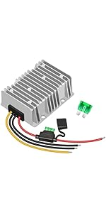 Used to reduce my EZGO TXT48v battery cluster down to 12v for an LED headlight. Quick and easy to install. Connect the +(red) cable to the first batteries + terminal. Connect the -(black) cable to the negative terminal of the last battery in the pack. Instant 12v reduction. Confirmed voltage reduction with multimeter. Nice and small to easily mount to the metal frame of the golf cart. Seems sturdy and well built. Now we see how it holds up against time.