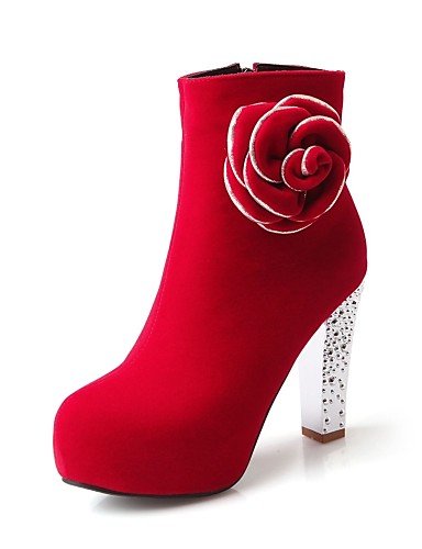 Tips:More colors available.,Shipping Weight:1,Net weight:0.8,Accents:Flower,Color:Red,Black,Available Width:Average,Outsole Materials:TR,Lining Materials:Fleece,Upper Materials:Fleece,Actual Heel Height:3.94 in (10cm),Heel Height:3in-3 3/4in,Heel Type:Chunky Heel,Performance:Others,Occasion:Office & Career,Casual,Season:Winter,Fall,Styles:Combat Boots,Gender:Women's,Category:Boots,