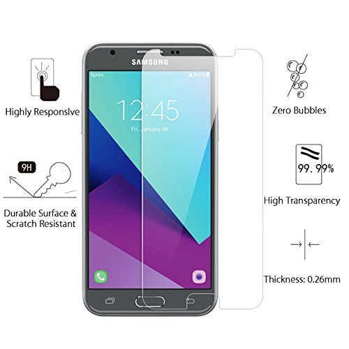 SUNDATOM [2-Pack] Tempered Glass Screen Protector Samsung Galaxy J3 2017 Whole transaprency: Realistic picture and more than 99 % transparency Much higher transmittance than PET screen protector Hardness:9H 3 times harder than PET screen protector. the screen will not get scratched even using hard object such as knives and keys Delicate touch: On back side of glass coated with a strong silicone layer to make installation easily and attached screen tightly so as to not affect sensitivity of touch screen Oleophobic coating: Nano technology processing for Oleophobic coating which prevent finger print leaves on surface of screen and dirt thing can be cleaned very easily Anti-shatter: The glass screen protector will not broken into small piece with sharp edge.It still keeps a whole piece of screen protector to protect your phone screen against scratches Installation Guide: Step 1 Please select a dust-free room to attached, it is best in bathroom. Step 2 Use wipes clean the screen¡¯s dust or foreign bodies. Step 3 Tear lower protective film, lightly attached alignment phone mirror, down, left, right border. Step 4 Removing the upper protective film. Step 5 aligned attached position again, then a little harder to four border. Please do not press the center part of the phone Package included: 2x Glass Screen protector 2x dry Cleaning Cloth 2x wet Alcohol swrap 2x Dust remove paper 1x retail box