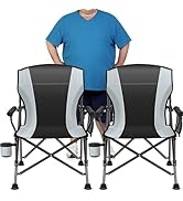 This 2-pack oversized folding camping chair set offers a spacious and durable seating solution supporting up to 450 lbs. Designed with a sturdy X-shaped frame, mesh side pockets, and built-in cup holders, these lightweight chairs fold compactly and come with a carry bag, making them perfect for camping, beach trips, hiking, and more.