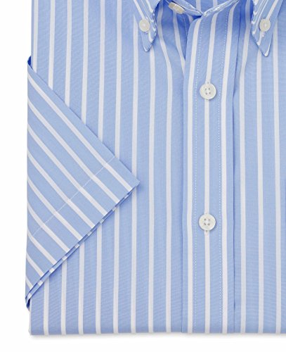 Crafted in a super soft cotton poplin, this blue and white short-sleeved shirt is decorated with an eye-catching wide reverse stripe. Its timeless features include a button-down collar, chest pocket and split yoke.