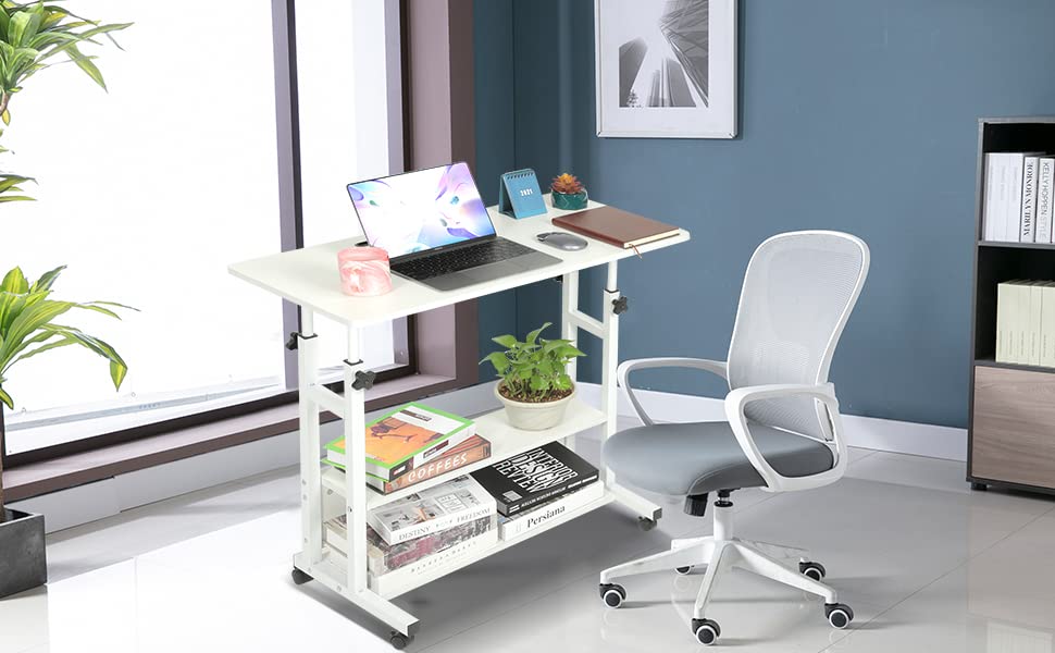 The KAPEICamper Adjustable Height Standing Large Desk is a portable, C-shaped oak-finish workstation designed for small spaces. It features a height range of 60-90 cm, lockable wheels for mobility, and multi-layer storage shelves. Made from durable wood and metal, it’s waterproof and easy to assemble, ideal for versatile home office, gaming, or bedside use.