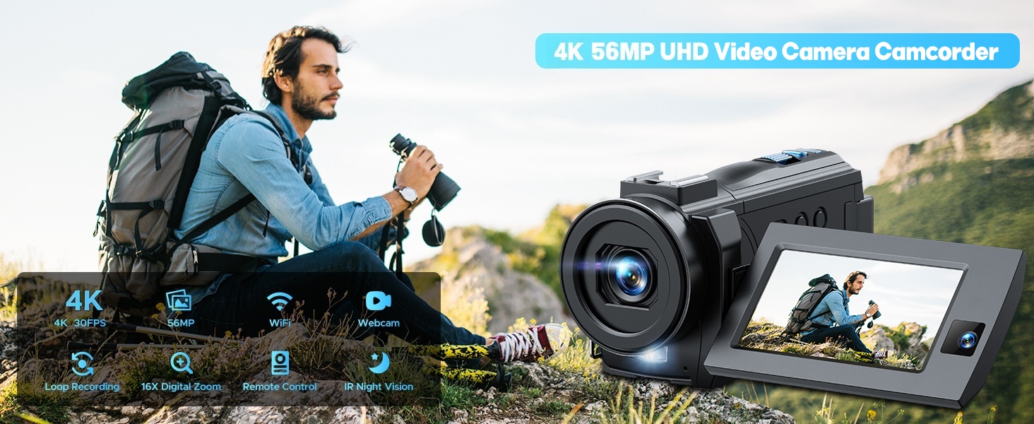 The FIREFOTO 4K Video Camera Camcorder combines a powerful 56MP dual lens system with 16x digital zoom and IR night vision, enabling professional-grade video and photo capture in any lighting. Featuring a 3.0" rotatable touchscreen, dual rechargeable batteries for extended use, WiFi connectivity for instant sharing, HDMI output for big-screen playback, and a handheld stabilizer for smooth footage, this camcorder is designed for vloggers, content creators, and professionals seeking versatile, high-quality recording on the go.